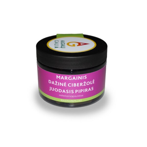 TIKRASIS MARGAINIS (SILIMARINAS) + CIBERŽOLĖ (KURKUMINAS) + JUODIEJI PIPIRAI ( PIPERINAS) padeda palaikyti normalią kepenų veiklą. Kurkumino absorbciją pagerina piperinas [ PIPIRAI ] .